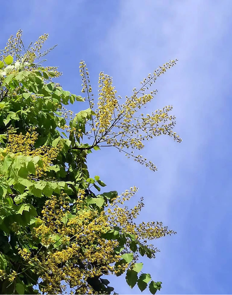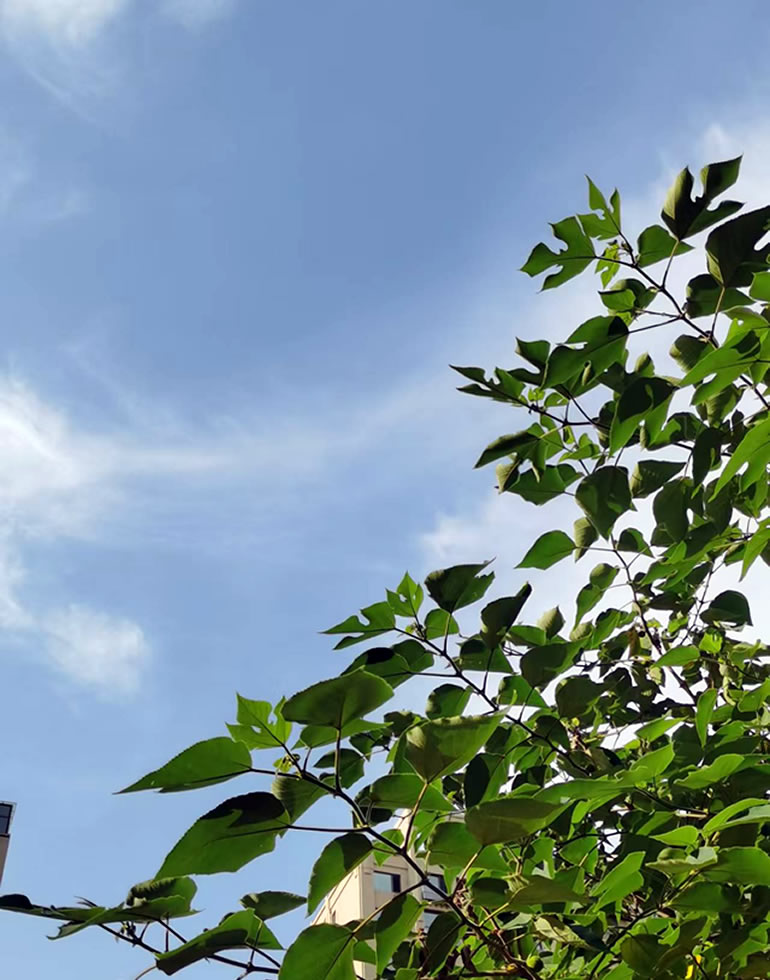 叶茂花繁枝头俏,云淡风轻天际遥