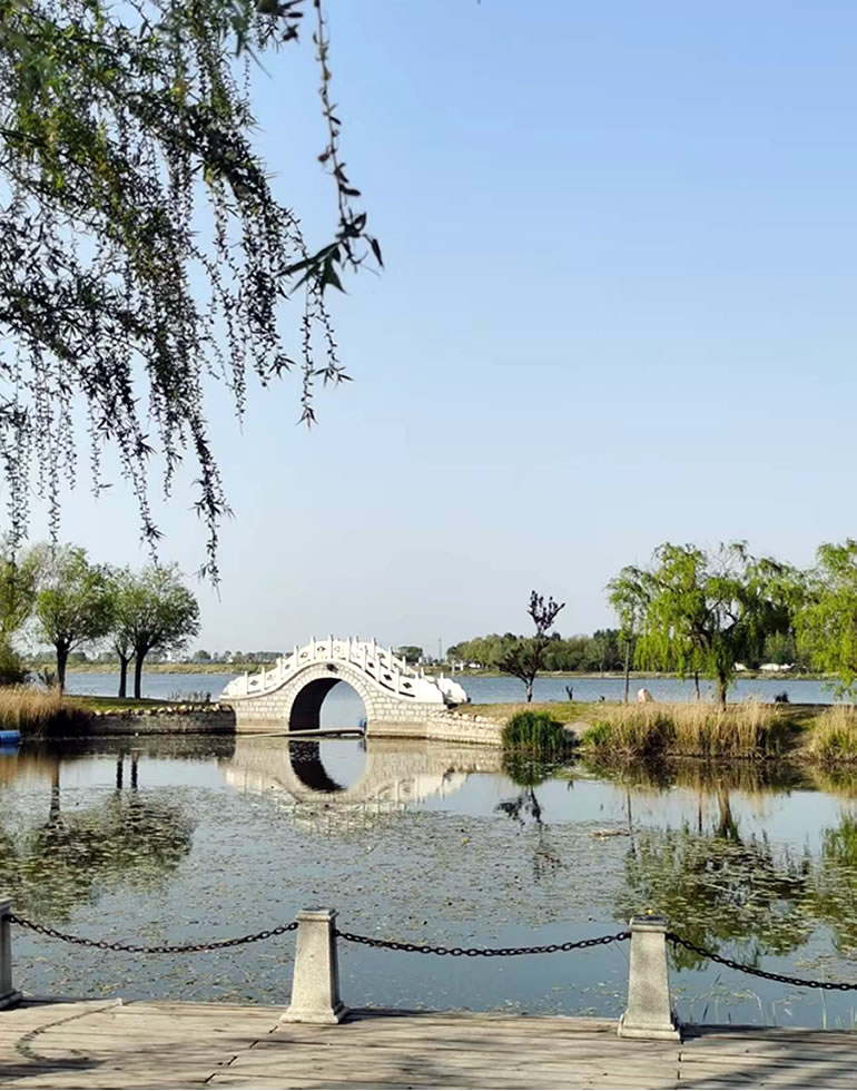 柔柳轻摇迎远客,玉桥静卧送清波